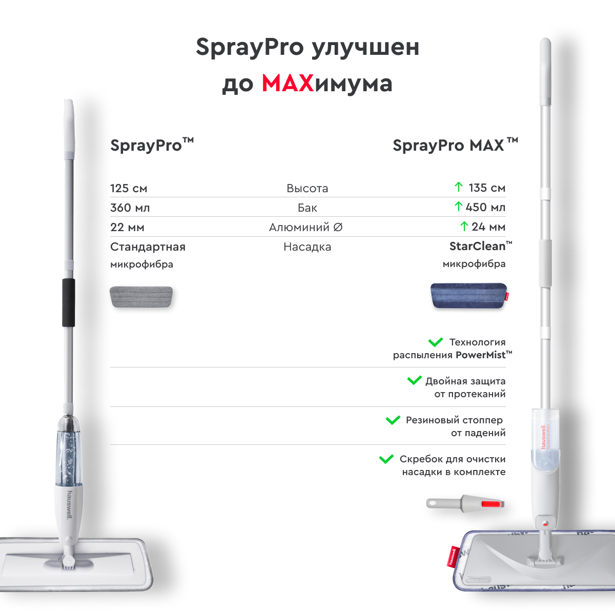 Швабра с распылителем Hauswell, SprayPro MAX, серый, 1 насадка интересное: