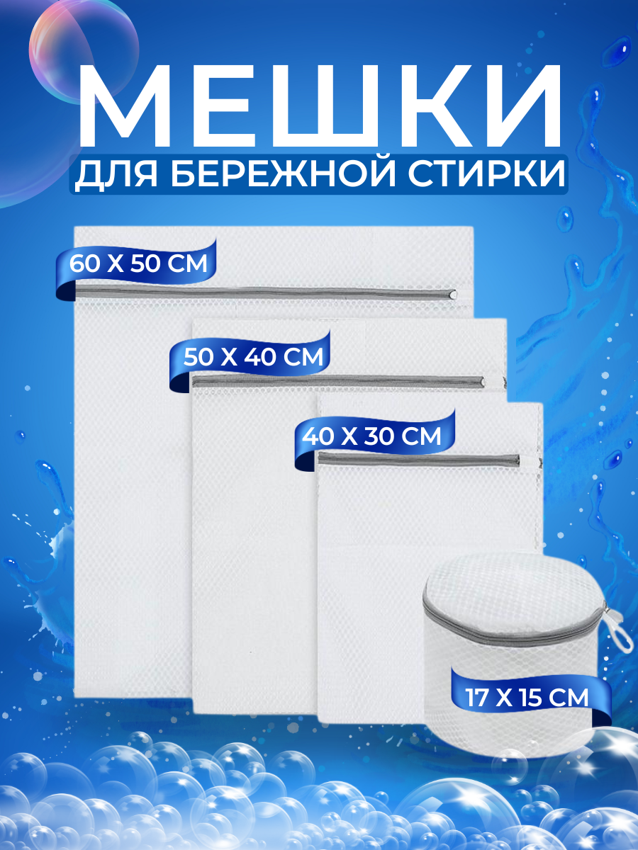 Набор мешков для стирки "Идея и точка" - 4 штуки, белый