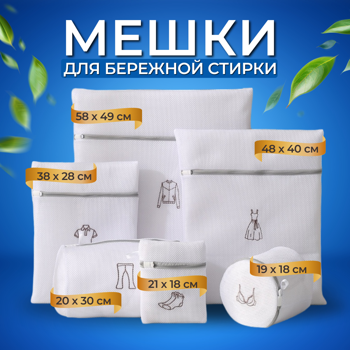 Мешки для стирки белья и одежды 5 шт