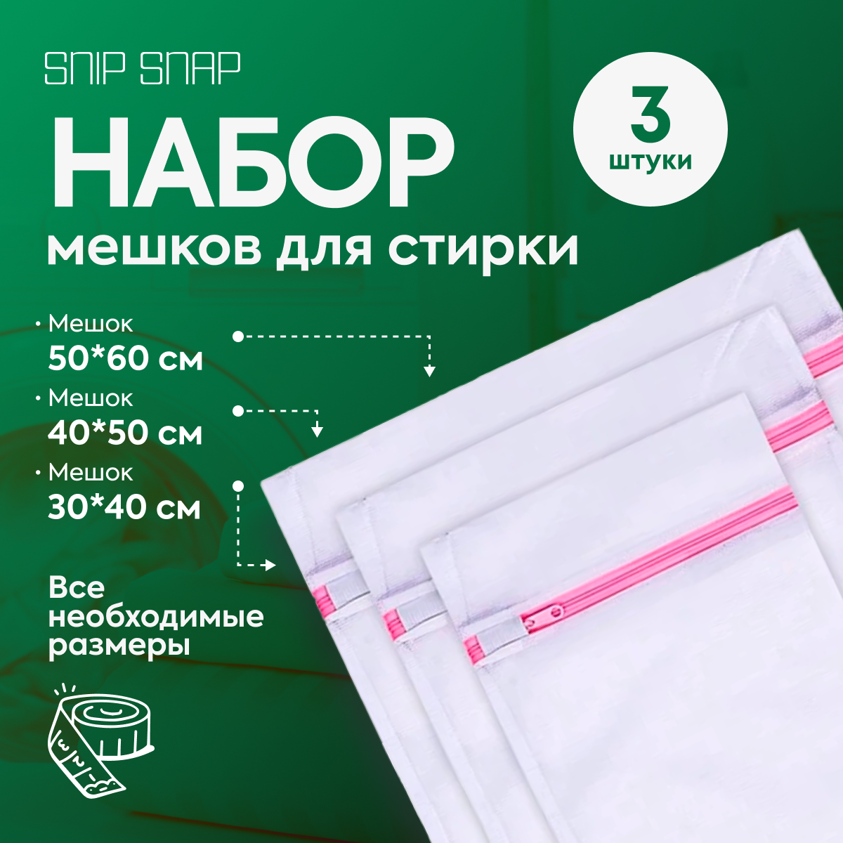 Мешки для стирки SNIP SNAP, для изделий из пуха и нижнего белья, белые, 3 шт интересное: