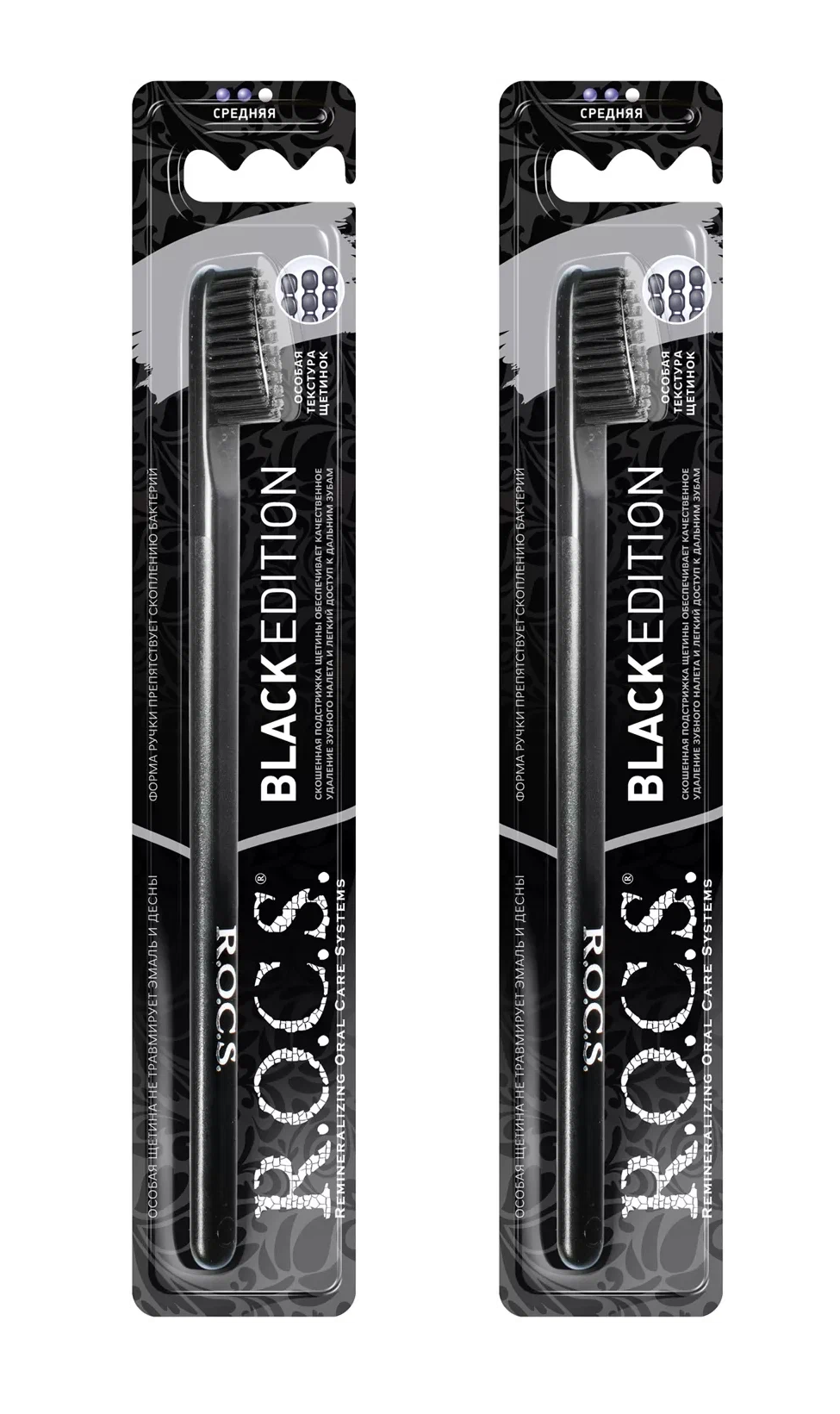 Купить Зубная щетка R.O.C.S. Black Edition Classic, черная/черная, 2 щетки