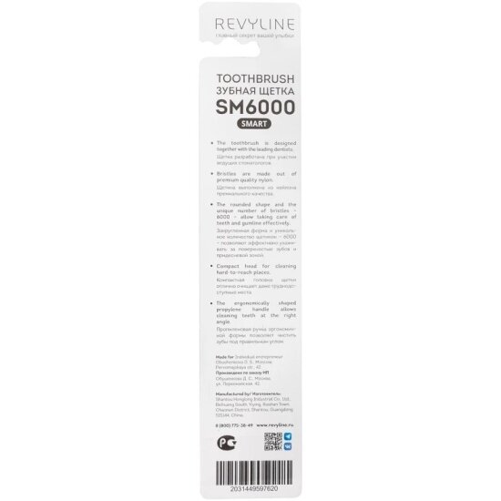 Зубная щетка Revyline Smart SM6000, мягкая, для самостоятельной очистки, от 6 лет