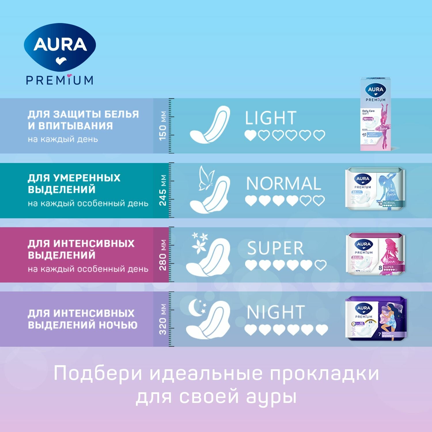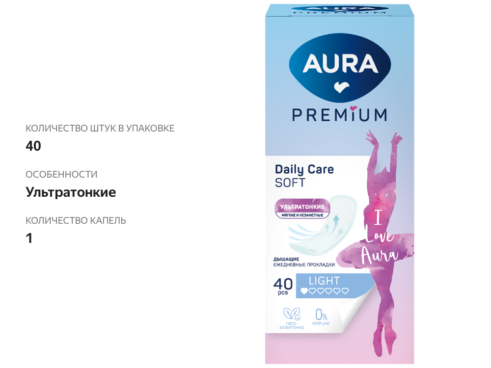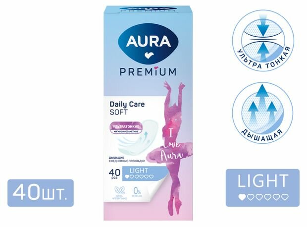 Прокладки женские ежедневные ультратонкие LIGHT 40шт, AURA PREMIUM