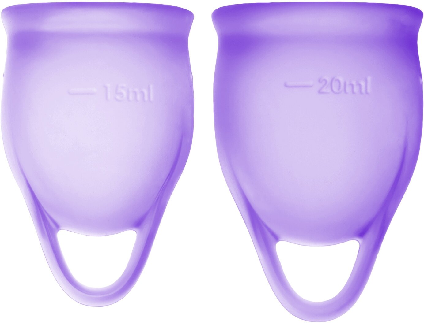 Купить Набор менструальных ЧАШ, 2ШТ, 15 И 20 МЛ FEEL CONFIDENT MENSTRUAL CUP DARK LILAC С петелькой