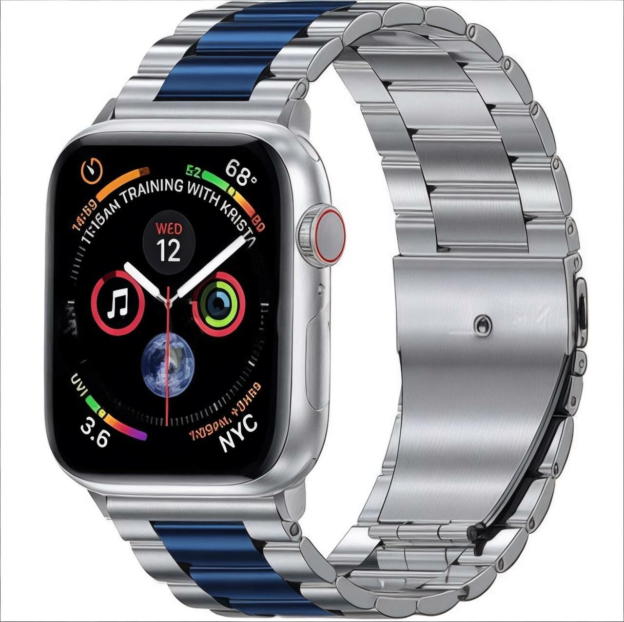 Купить Металлический блочный ремешок для Apple Watch 1-9, SE, ULTRA 42-44-45-49 мм,серебристый-синий