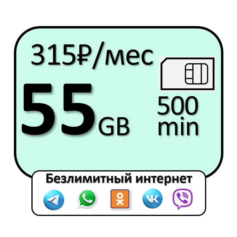 Купить Сим карта 600 минут по РФ для смартфона и планшета 55 Гб безлимитный интернет на сервисы