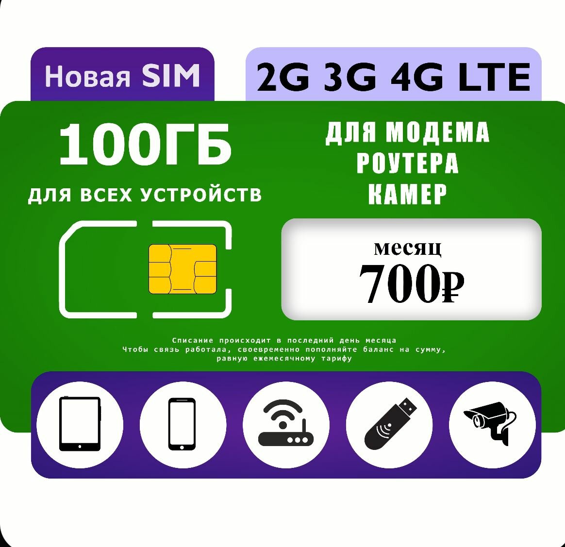 Тариф для 4G модема WiFi роутера сим-карта на 100 ГБ за 700 руб./мес. интересное:
