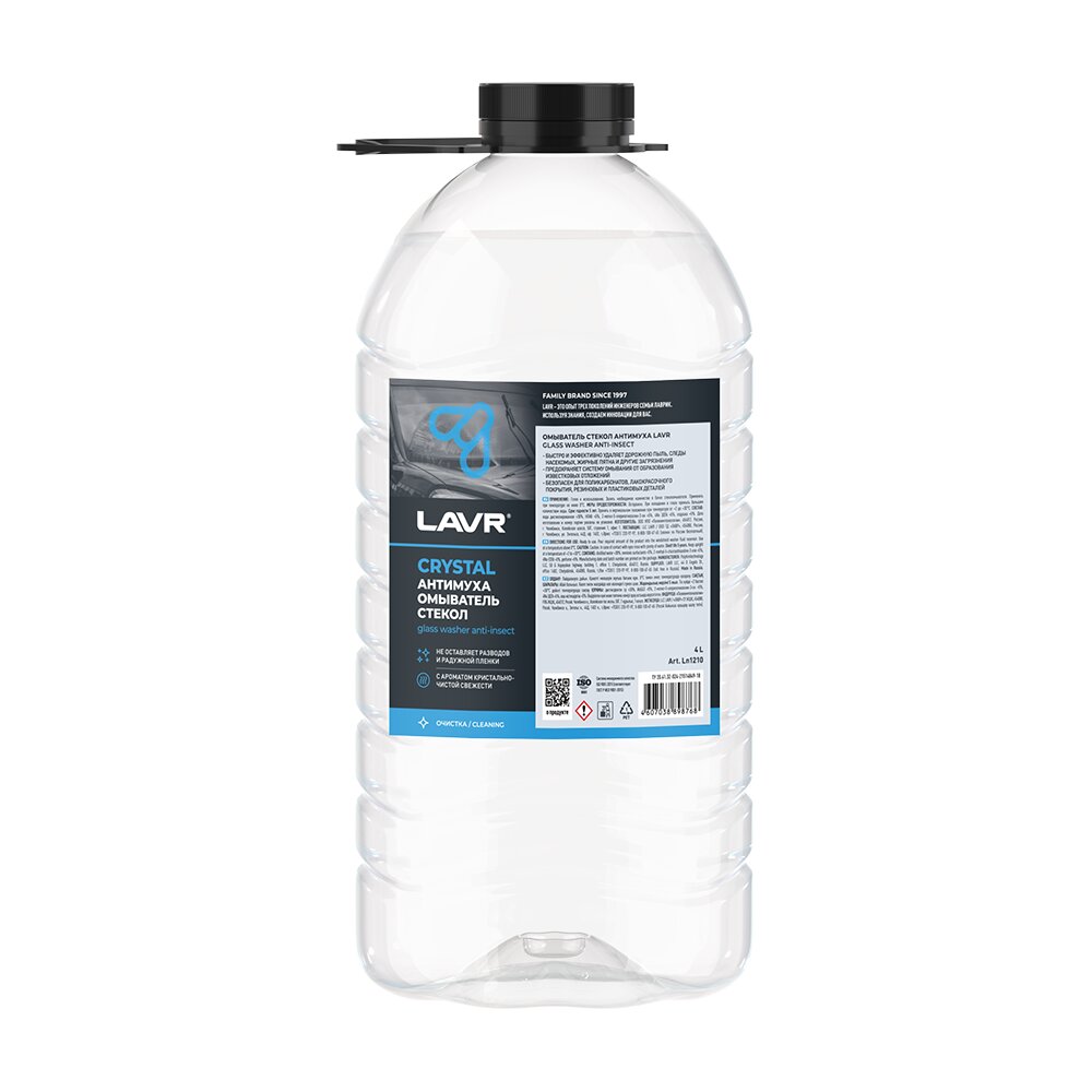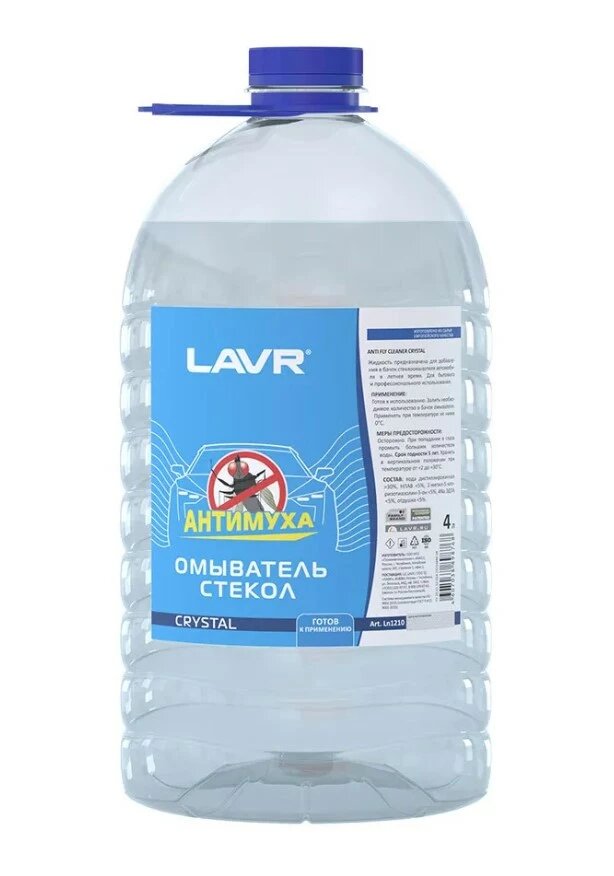 LAVR Жидкость стеклоомывателя летняя 4л - летняя, готовая к применению антимуха CRYSTAL