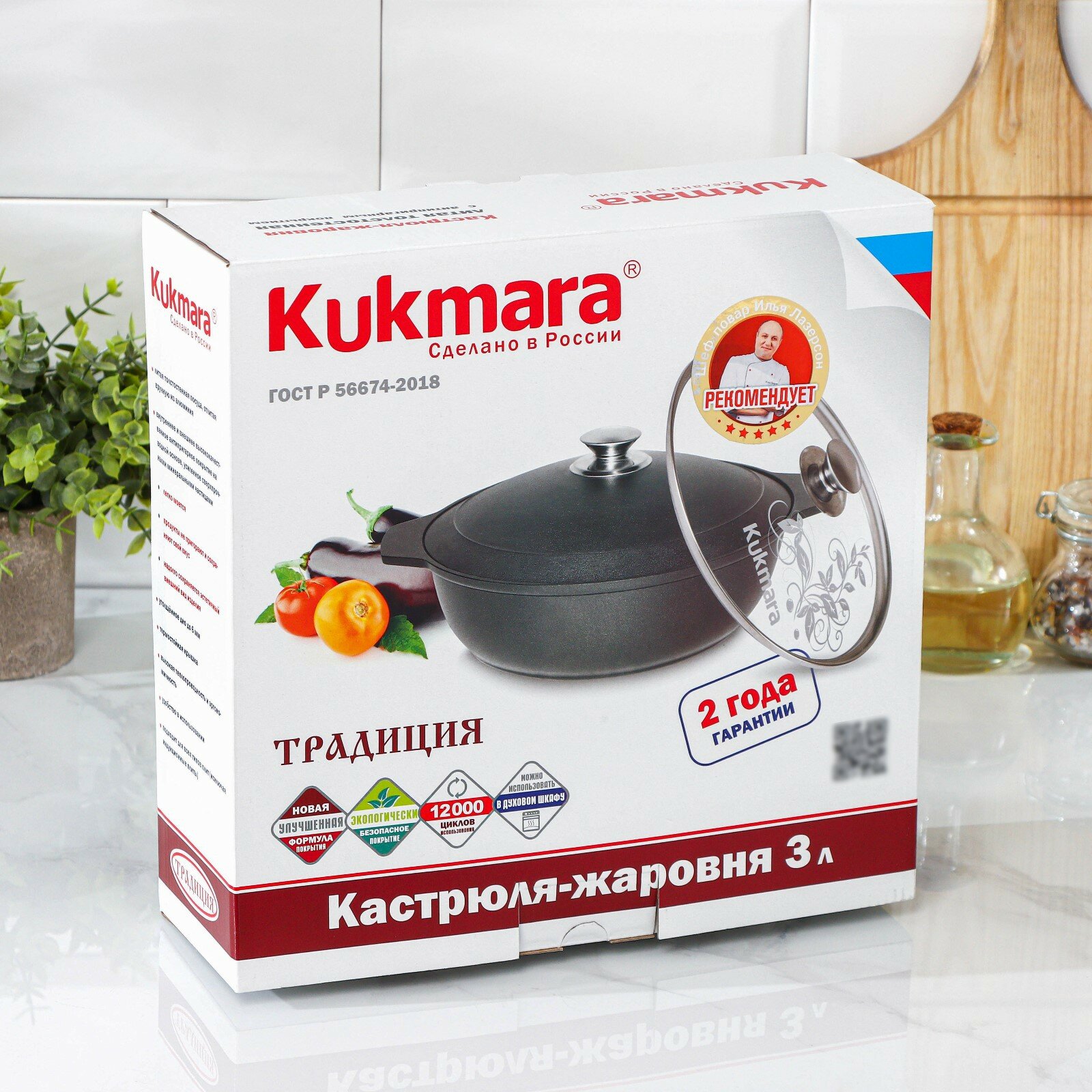 Купить Жаровня Традиция, 3 л, d=26 см, стеклянная крышка, антипригарное покрытие, цвет чёрный KUKMARA 172 .