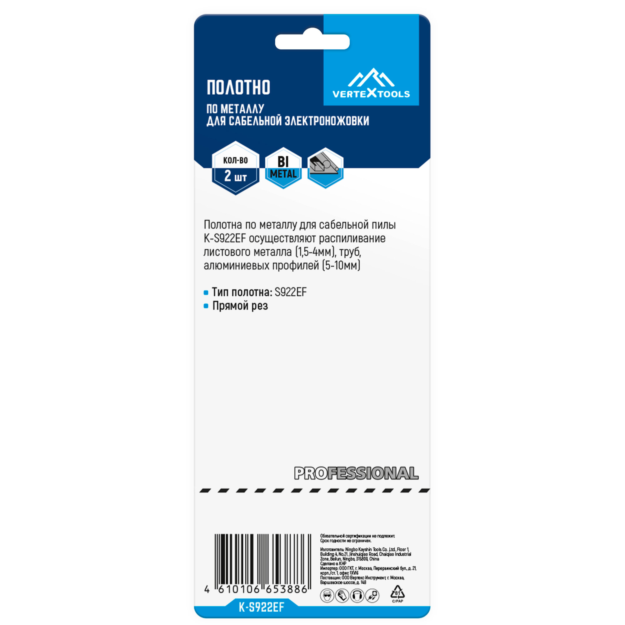 vertextools Полотно для сабельной электроножовки 2 предмета K-S922EF