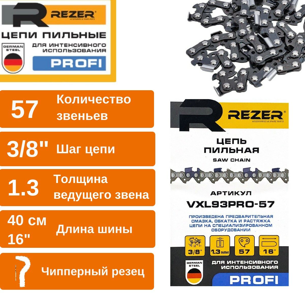 Купить Цепь пильная для пилы, 57 звеньев, Длина шины - 16"/40см, Шаг цепи - 3/8", Толщина ведущего звена- 1,3 мм, Зуб - Чиппер, REZER PROFI