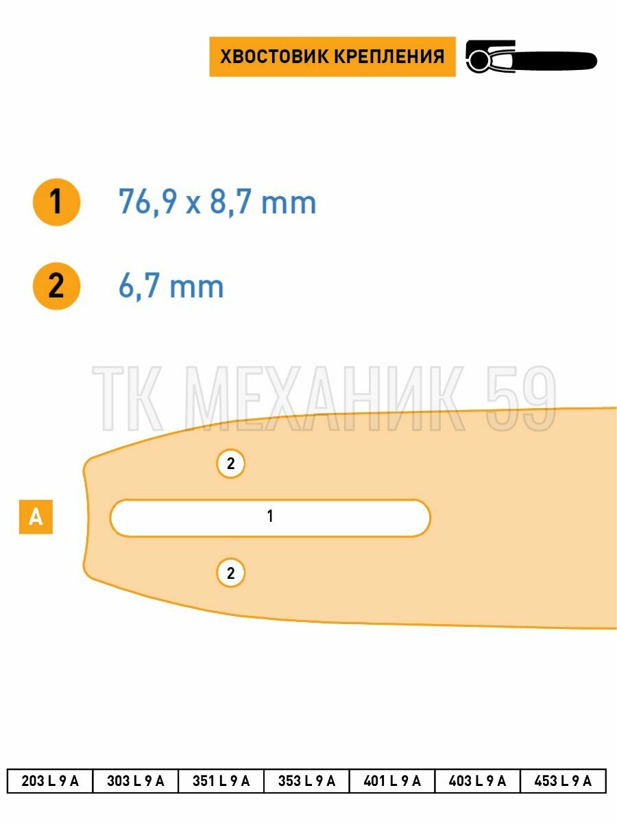 Rezer PROFI 353 L 9 A Шина для бензопилы Husqvarna 236/240, Partner, Poulan, Makita, 52 звена, длина шины 14"( 35 см) , шаг 3/8", ширина паза 1.3 мм