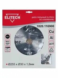 Купить Диск пильный Elitech 1820.116900 255 ммx30 мм 100зуб