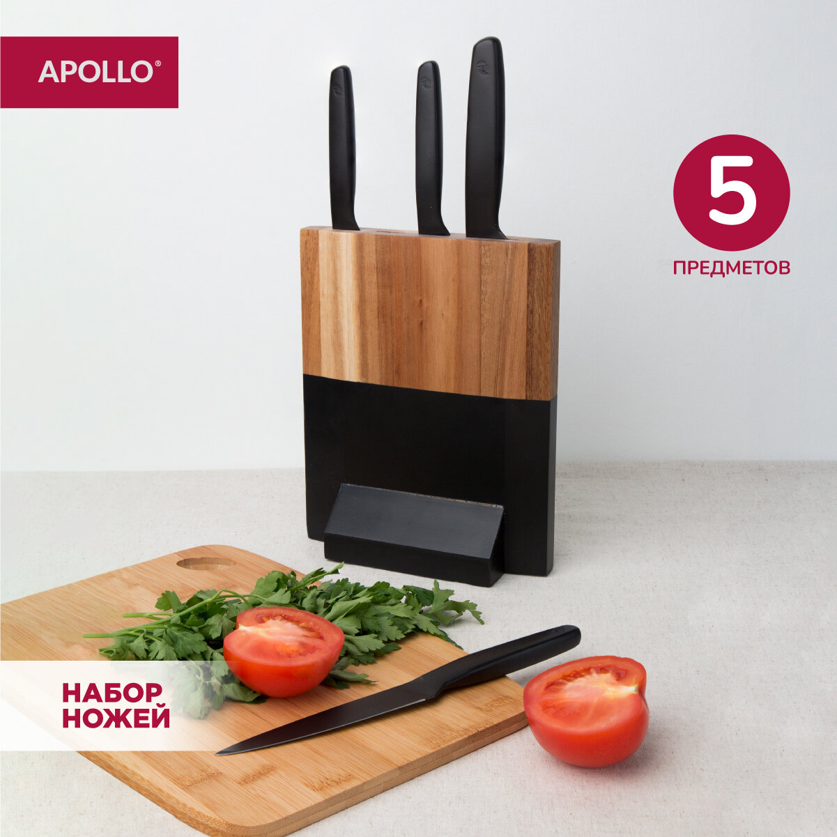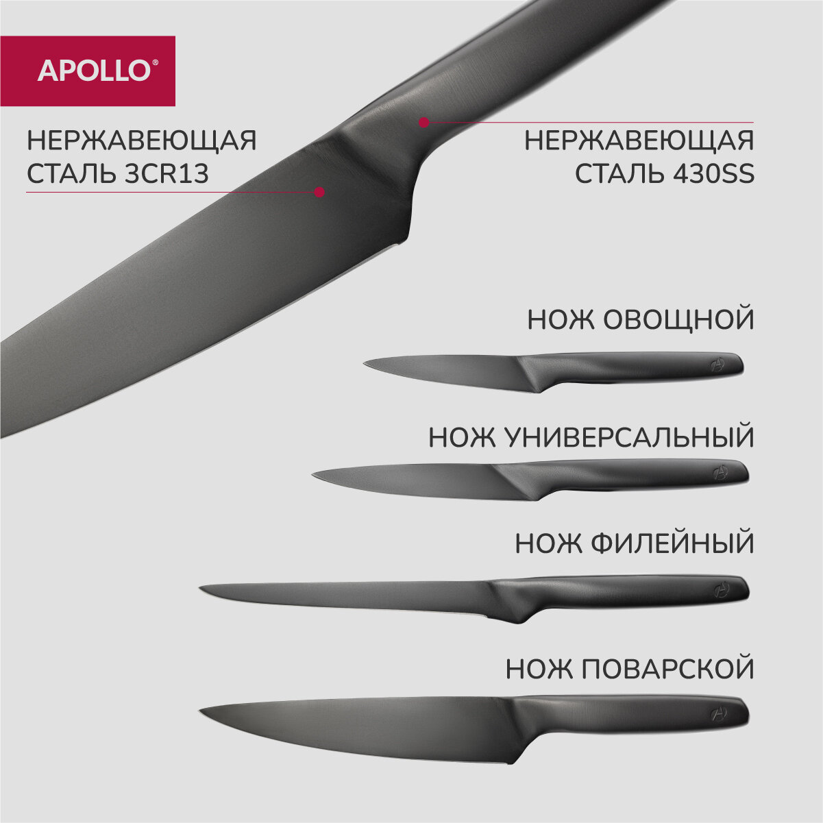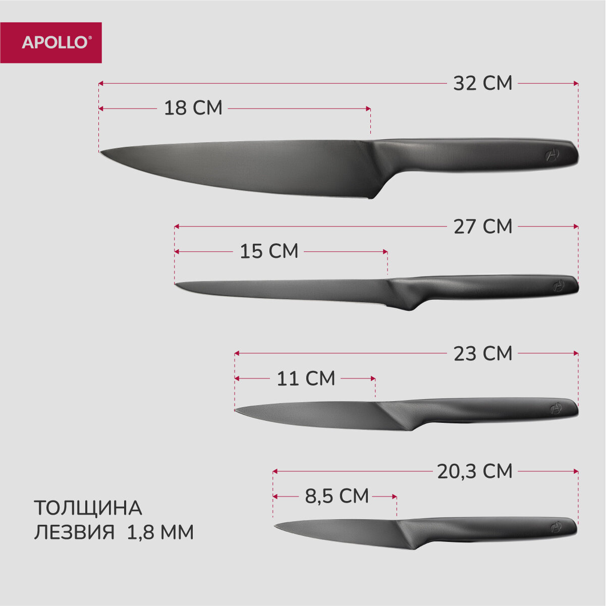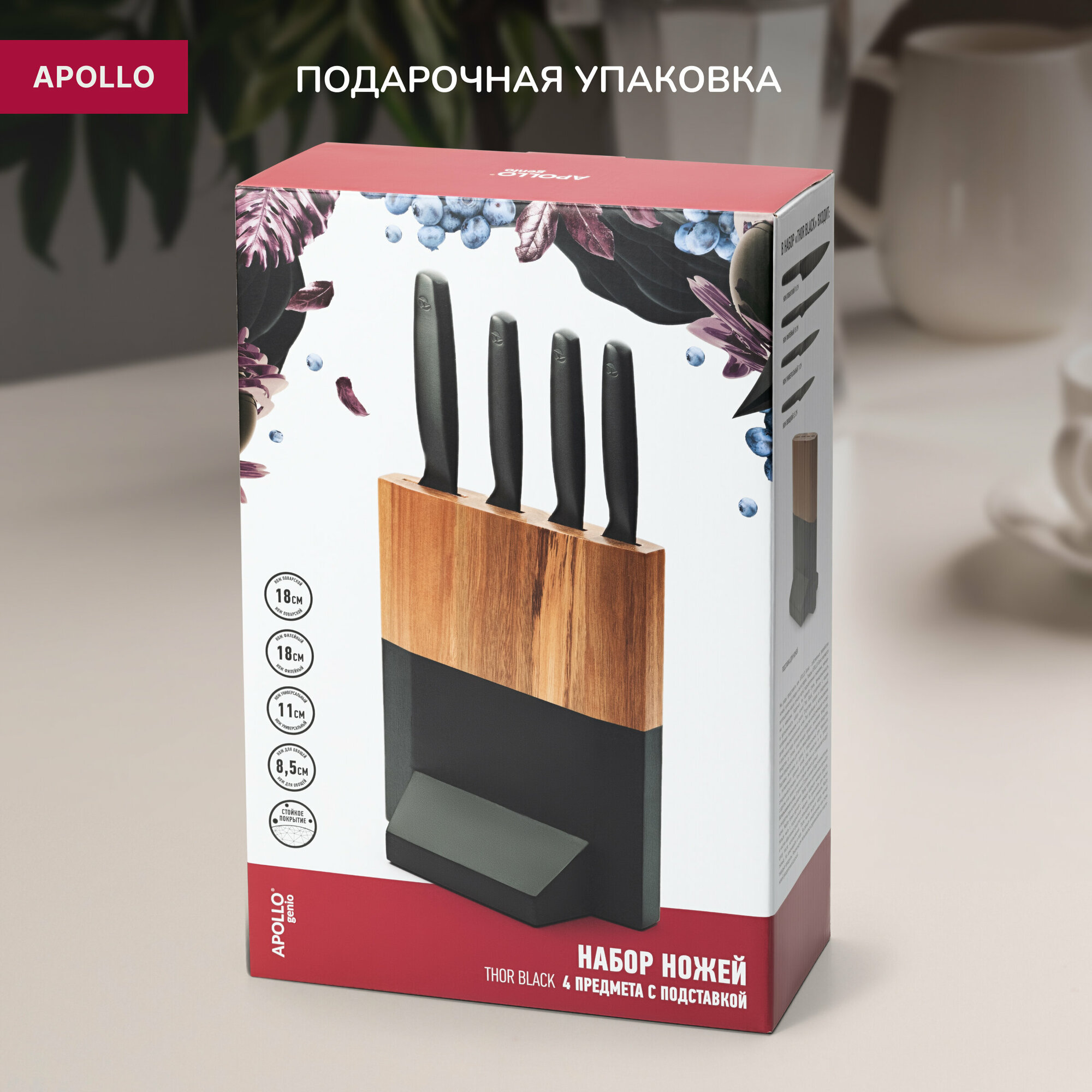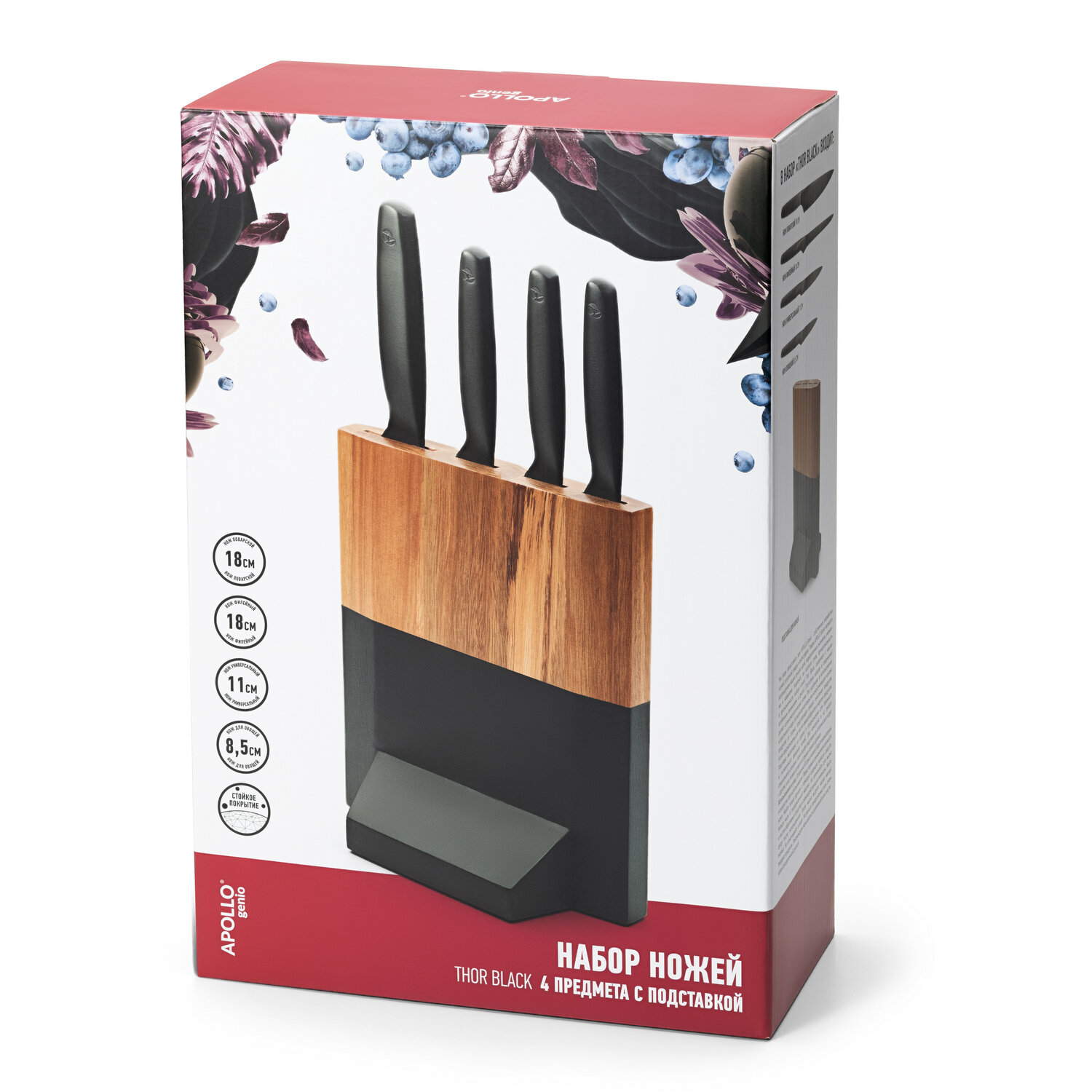 Ножи кухонные в подставке, набор ножей 4 предмета APOLLO "Thor Black" интересное:
