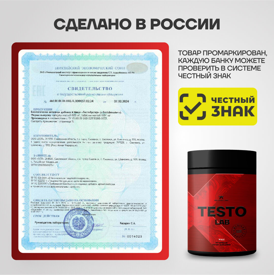 Купить Бустер тестостерона Testo Lab для мужчин 90 капсул - DAA, йохимбин, пажитник, аргинин - анаболический комплекс