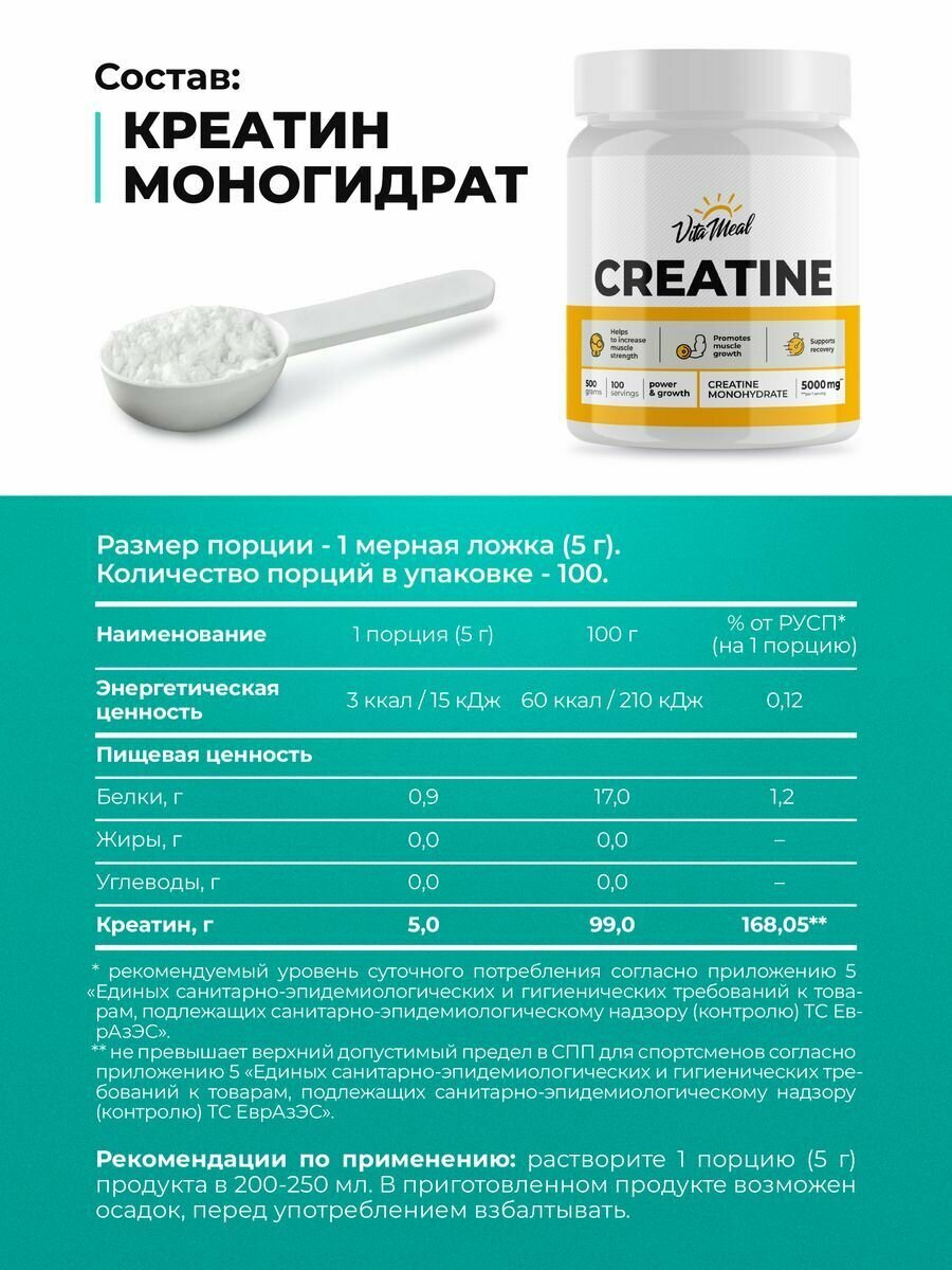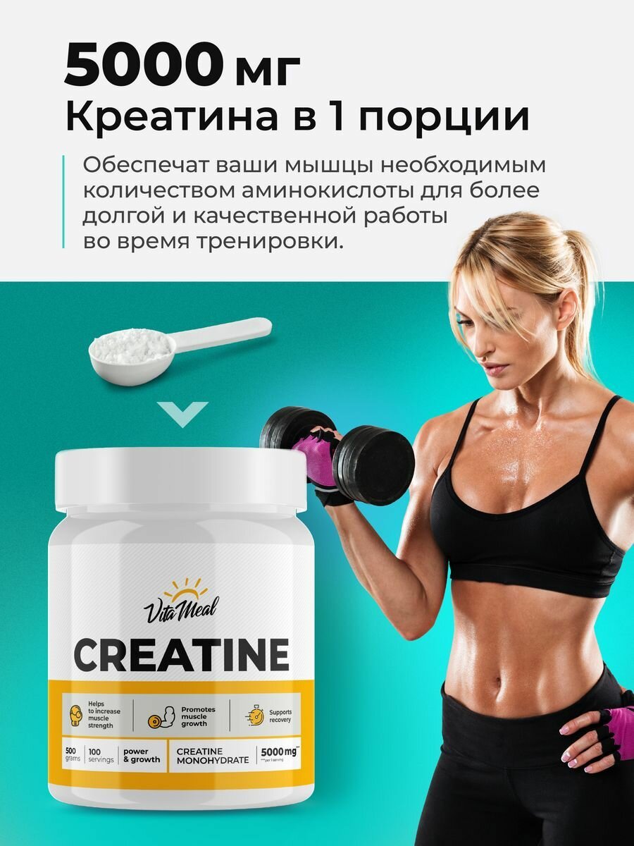 СохранитьКреатин моногидрат порошок Creatine Monohydrate VitaMeal 500 г, Без вкуса интересное: