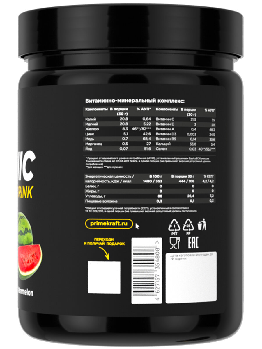 Изотоник PRIMEKRAFT со вкусом Арбуза Isotonic (Watermelon) банка, 750 гр / 25 порций