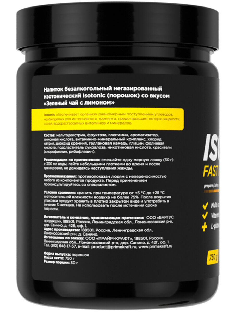 Изотоник Prime-Kraft ISOTONIC 750 г, вкус: лимон и зеленый чай