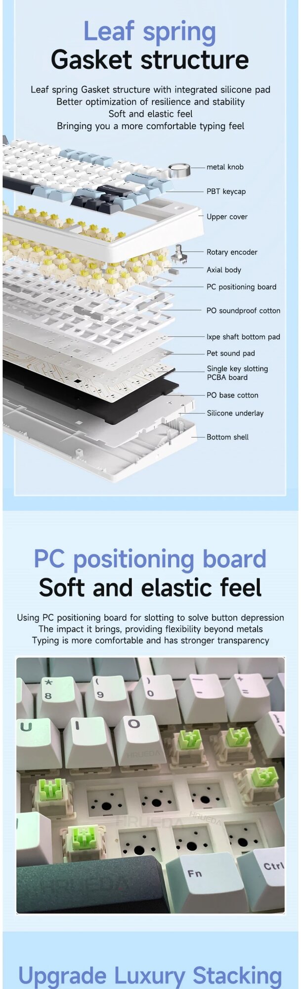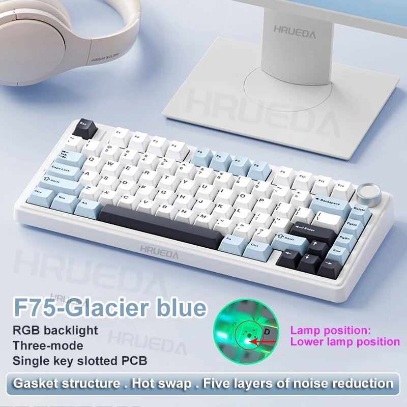 Механическая игровая клавиатура AULA F75, Glacier Blue, LEOBOG Ice Vein Axis интересное: