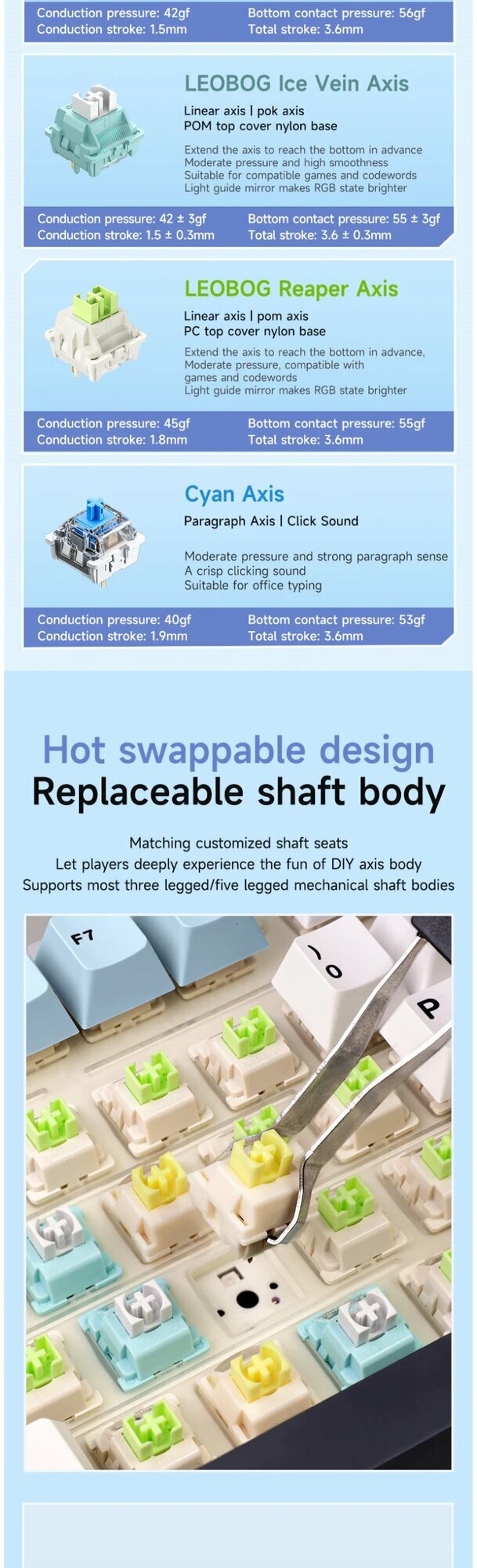 Игровая механическая клавиатура HD, Glacier Blue, LEOBOG Ice Vein Axis