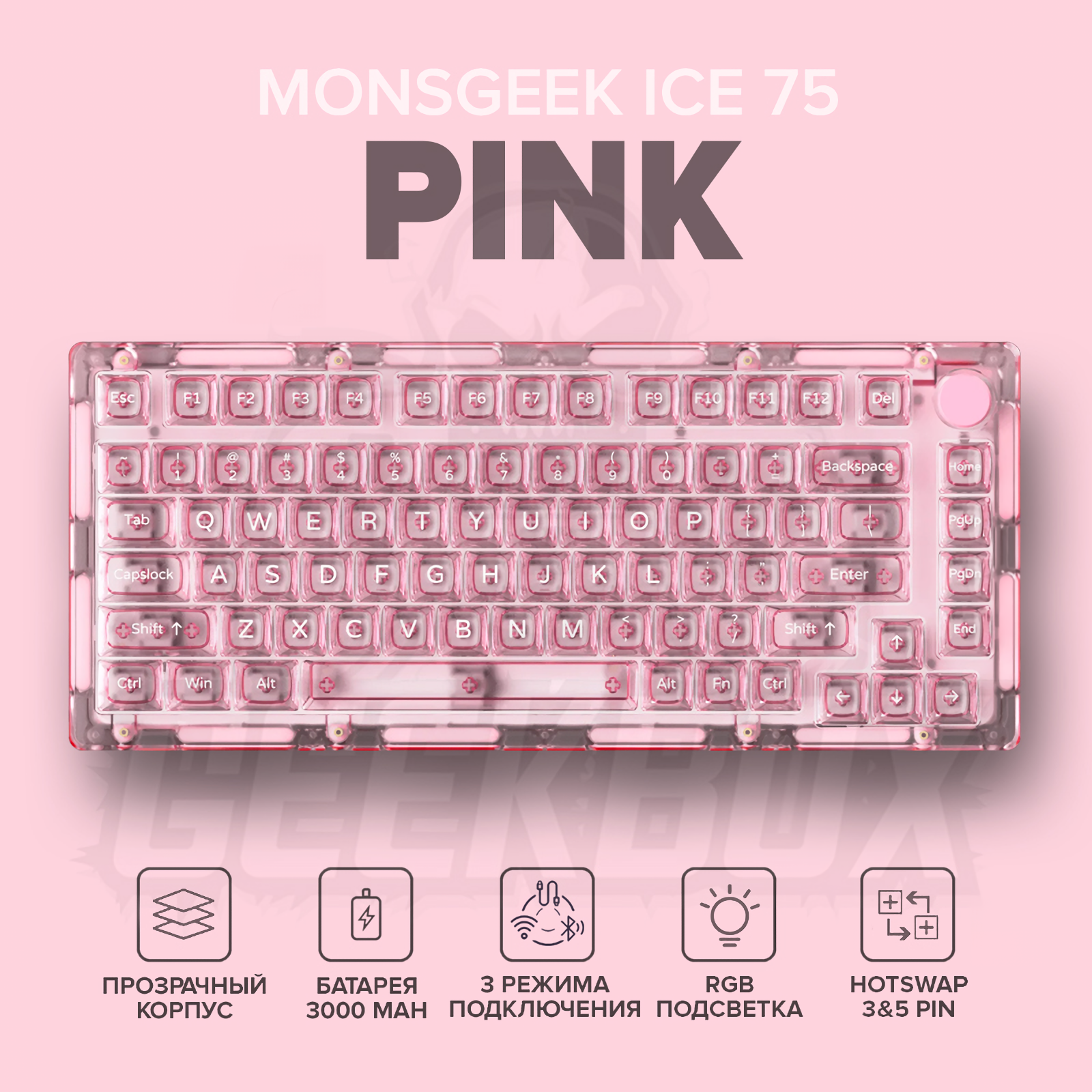 Купить Беспроводная механическая клавиатура Monsgeek ICE 75 Pink, Прозрачный корпус, RGB, 75%, Bluetooth 5.0, 2.4Ghz, USB Type-C, Английская раскладка