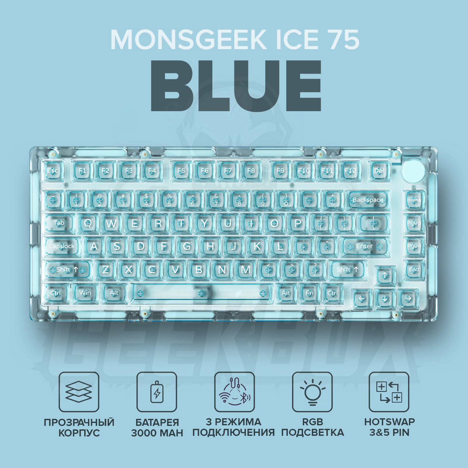 Купить Беспроводная механическая клавиатура Monsgeek ICE 75 Blue, Прозрачный корпус, RGB, 75%, Bluetooth 5.0, 2.4Ghz, USB Type-C, Английская раскладка