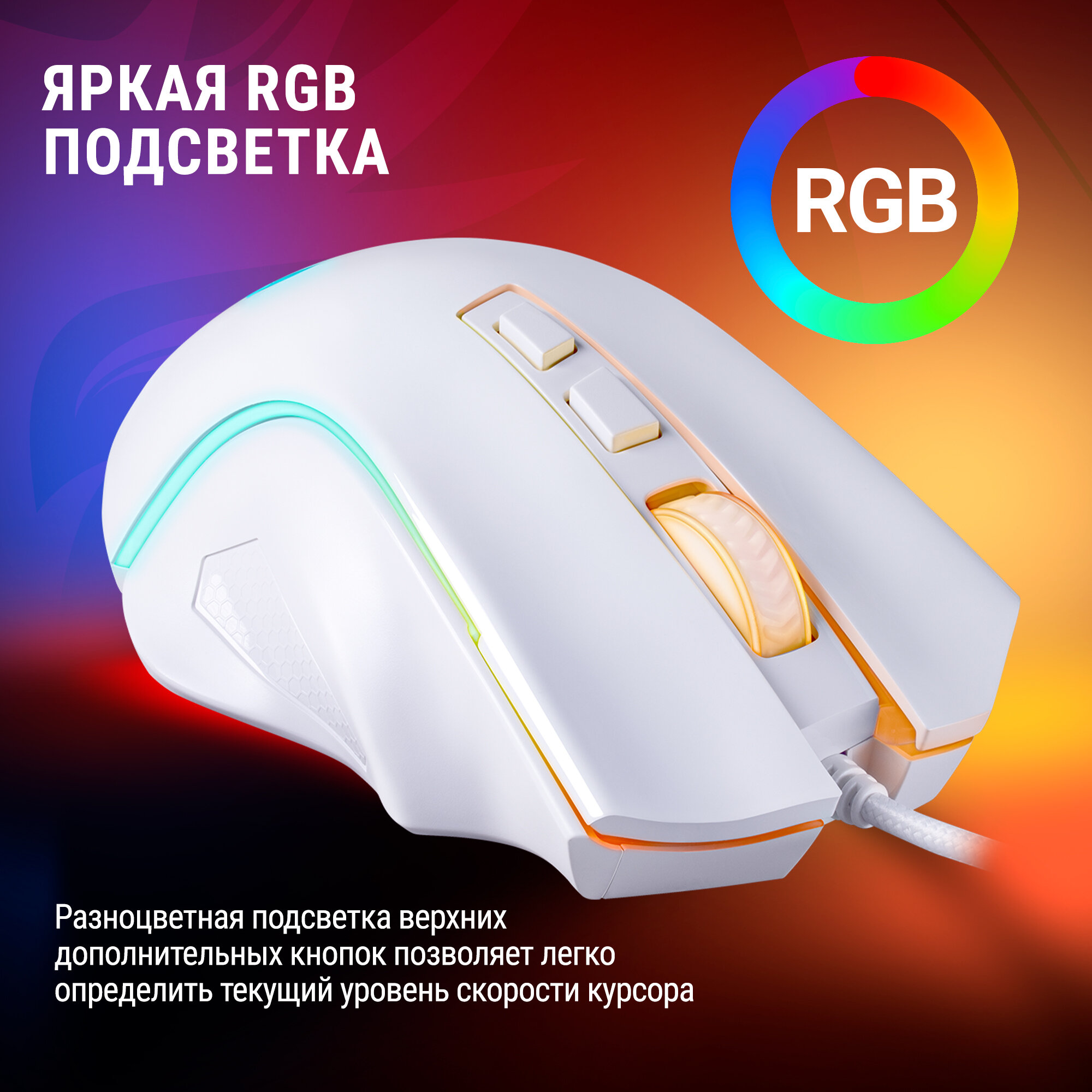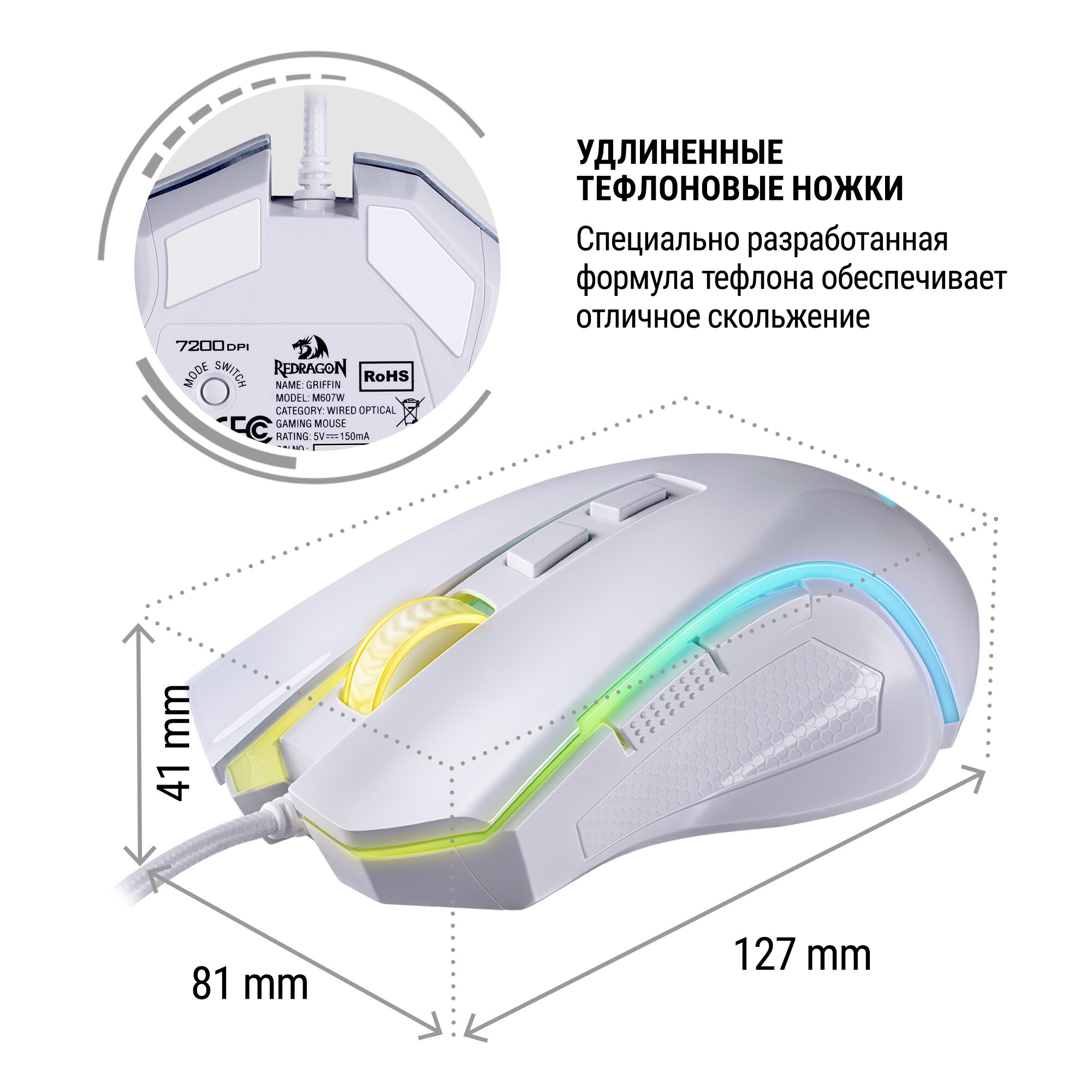 Игровая мышь Redragon Griffin RGB, для правой руки, оптическая, 7 кнопок, 7200dpi, белая интересное: