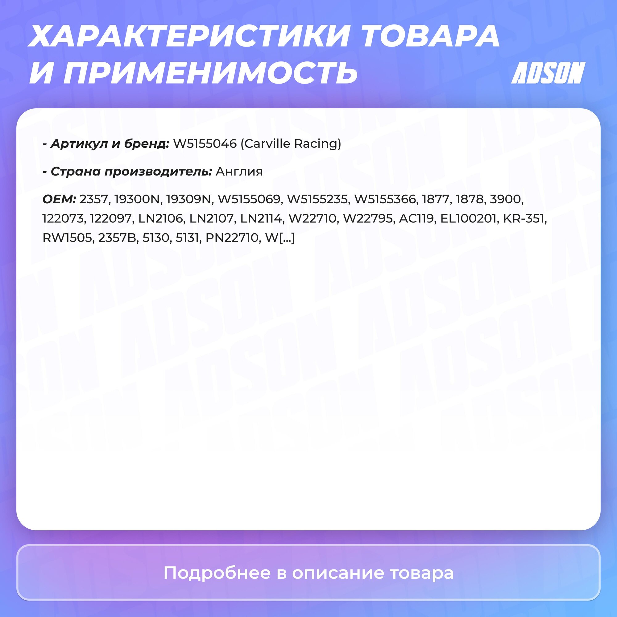 | Бренд | CARVILLE RACING |