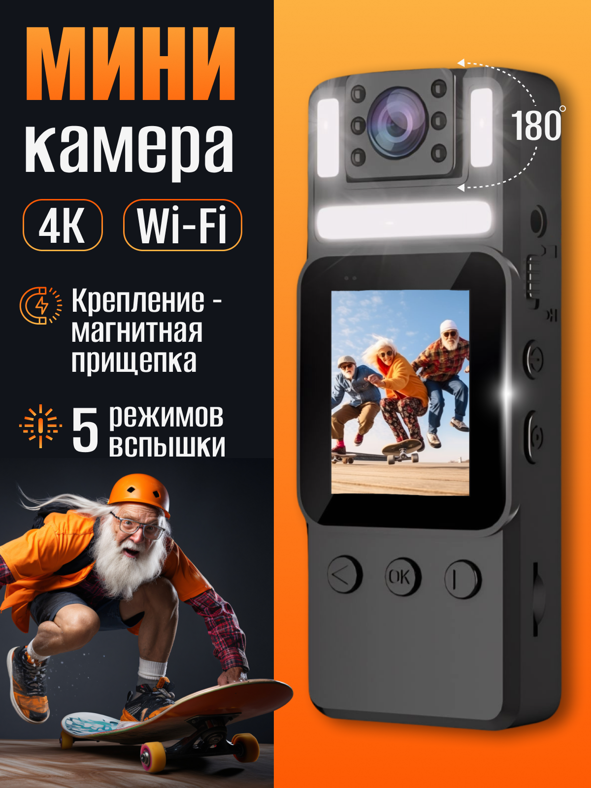 Камера видеонаблюдения wi-fi, скрытая миникамера, экшен, 4К