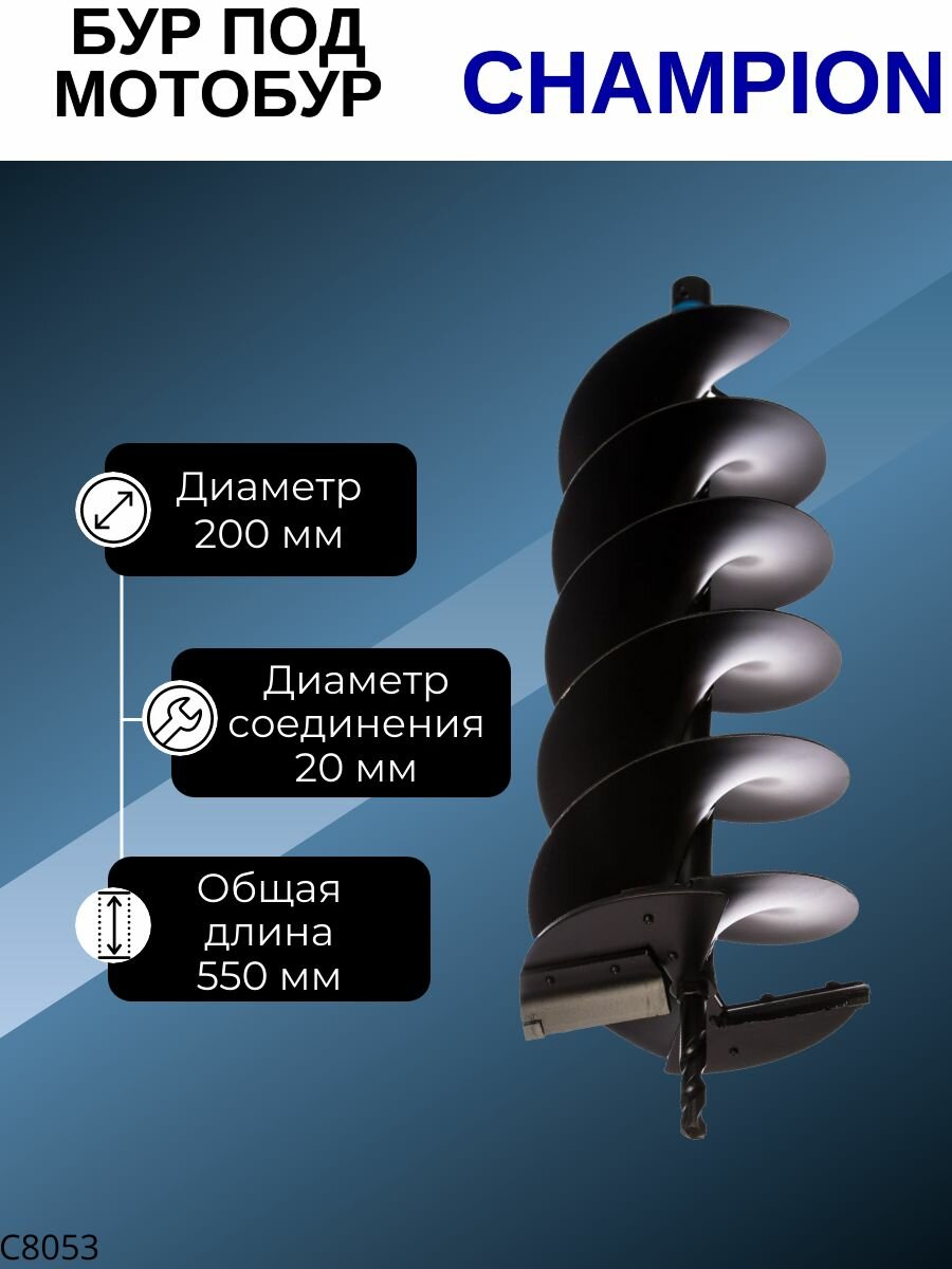 Шнек для грунта CHAMPION AG252, AG243 200мм,дл.550мм,20мм (C8053) интересное: