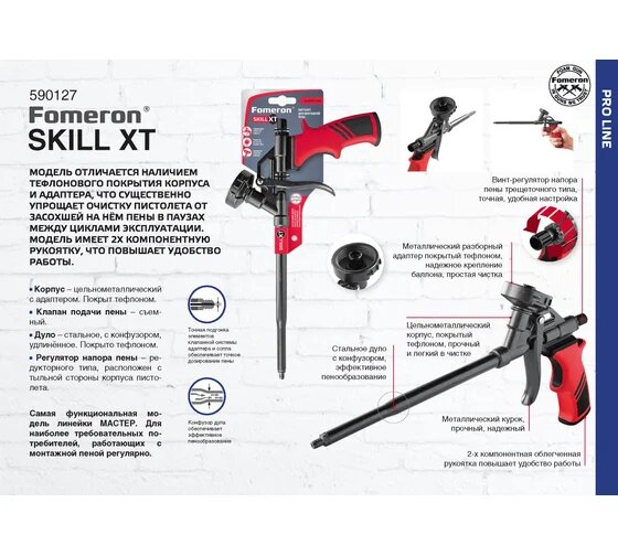 Fomeron Пистолет с тефлоновым покрытием для монтажной пены Skill XT 590127