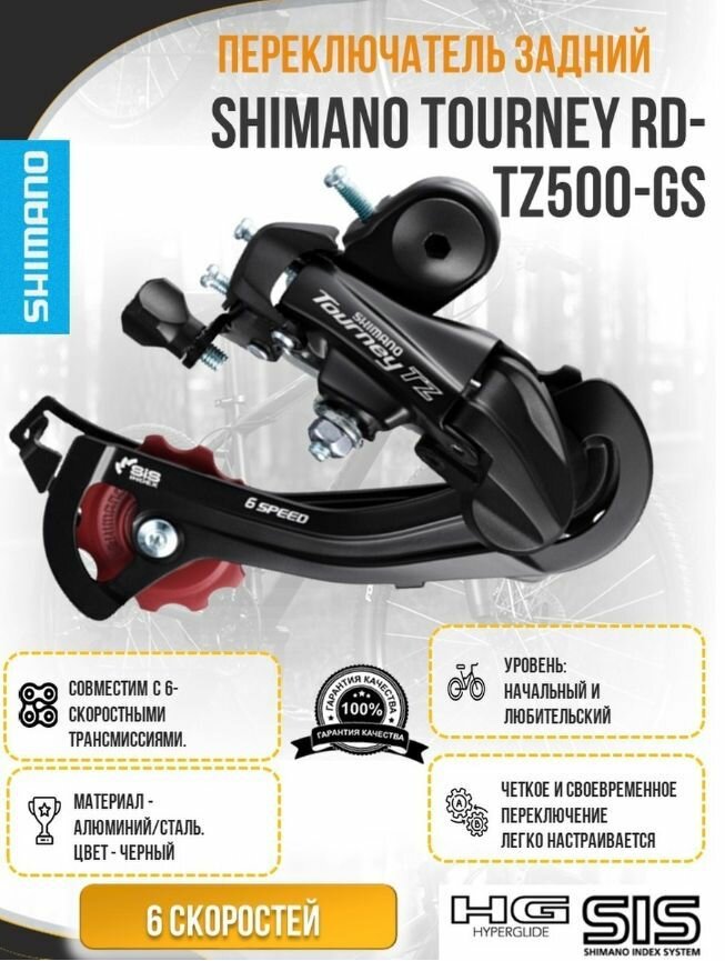 Переключатель задний Shimano Tourney RD-TZ500-GS, 6 -7 скоростей, крепление на петух