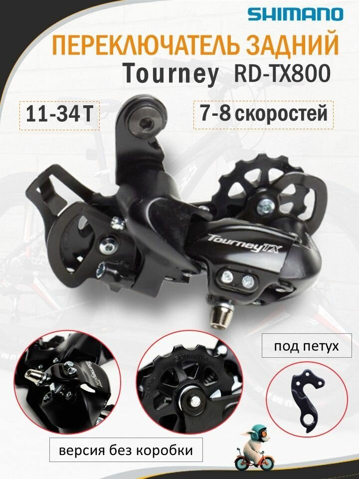 Переключатель задний SHIMANO, Tourney, RD-TX800, 7-8 скоростей, 11 - 34, под петух, черный без коробки интересное: