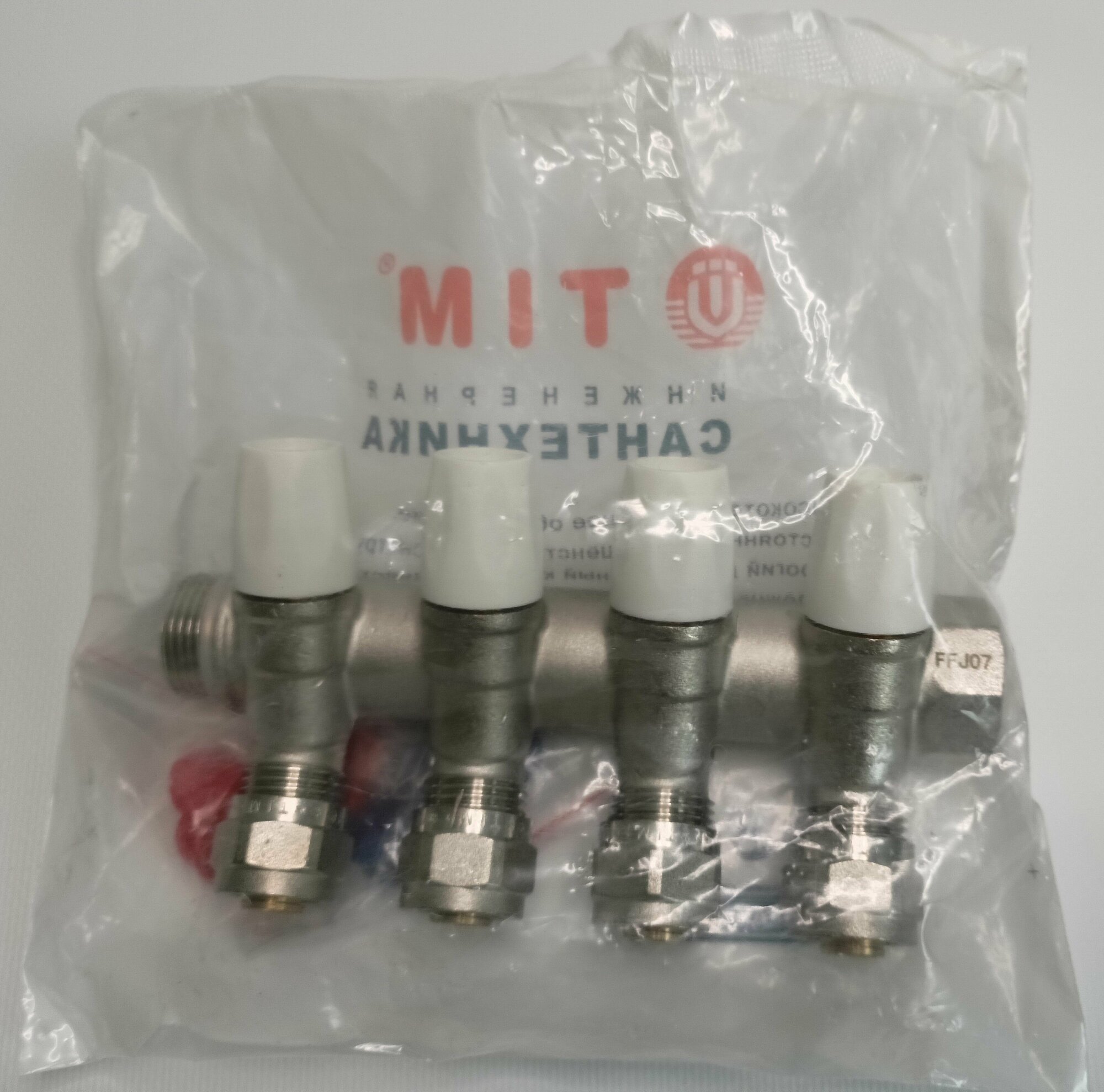 Коллекторная группа Tim KCS5004 1" ВР-ВР, 4 отвода 3/4"
