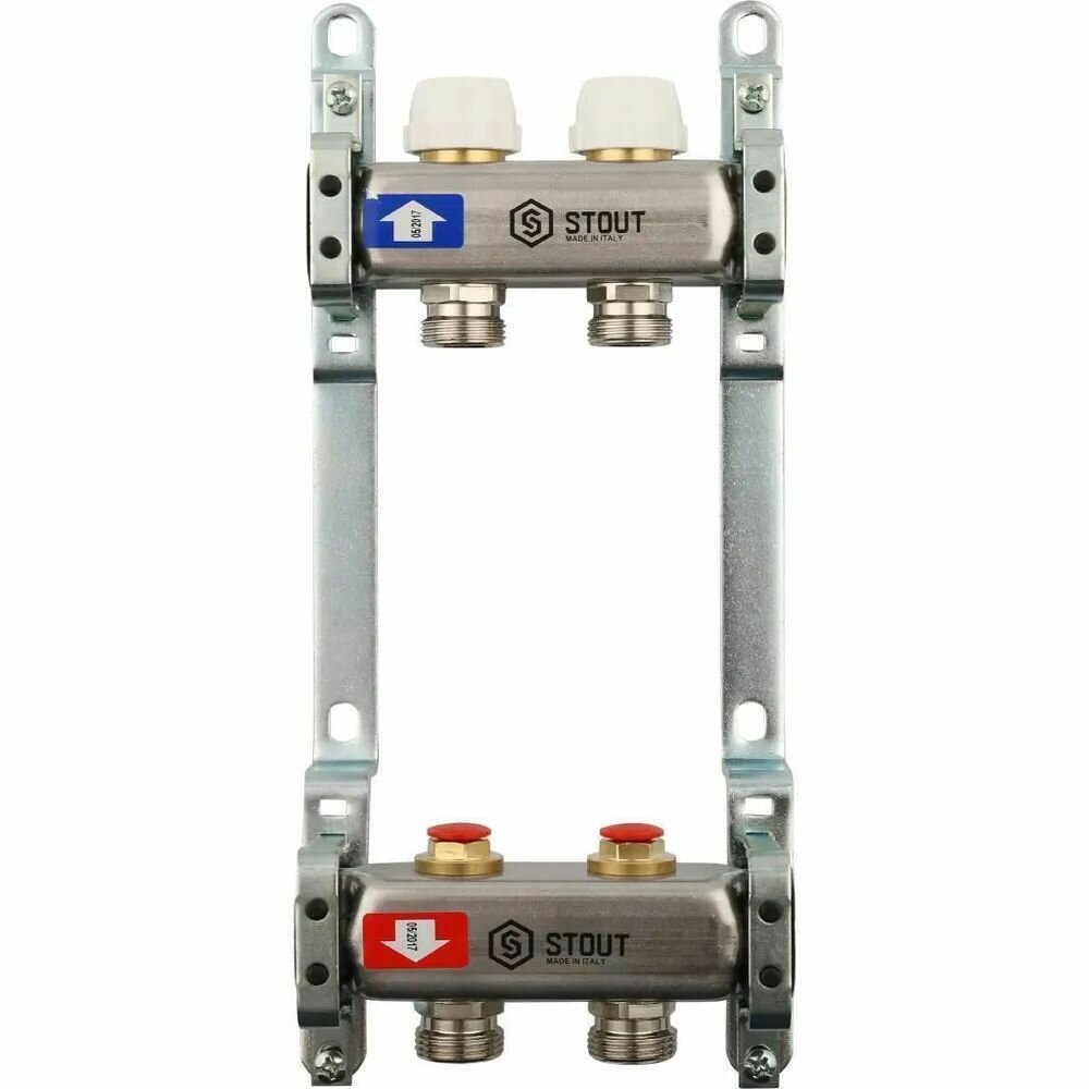 STOUT Коллектор для отопления на 2 выхода без расходомеров из нержавеющей стали SMS 0922 000002