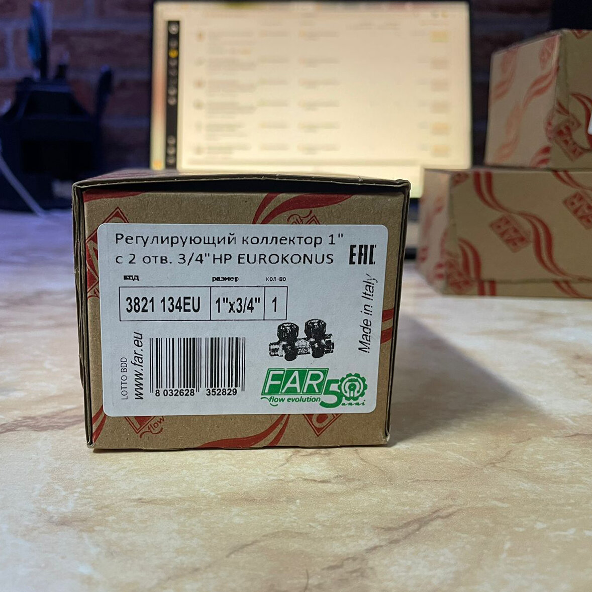 Коллектор лат клап рег 1" м/р 2в 3/4" ЕК н/р 45мм, FAR FK 3821 134 (1 шт.)