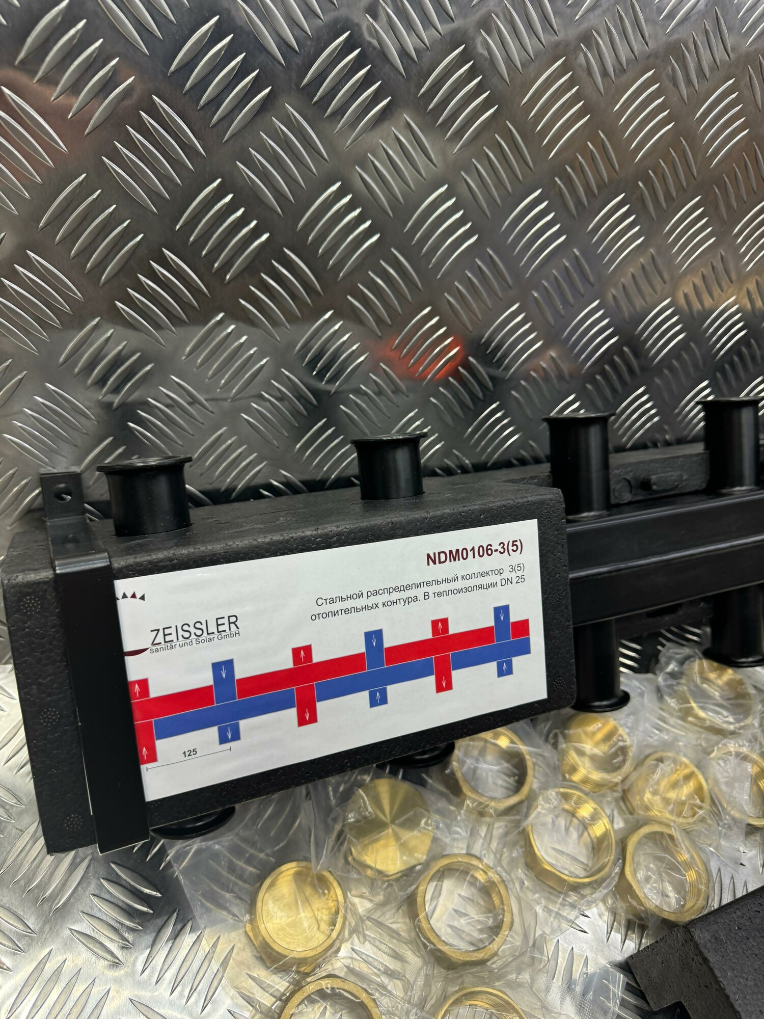 Стальной распределительный коллектор TIM - ZEISSLER на 3(5) отопительных контура. В теплоизоляции DN 25
