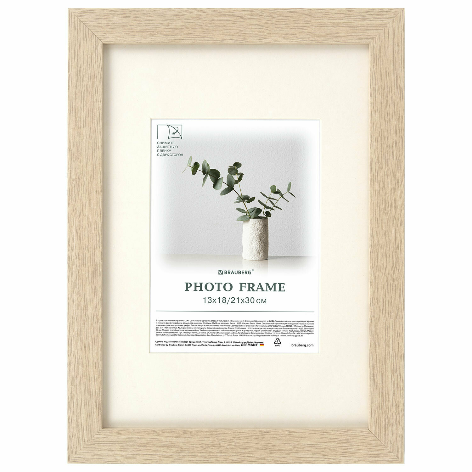 Купить Рамка 21х30 см с паспарту 13х18 см, небьющаяся, багет 26 мм, МДФ, BRAUBERG "Ambassador", цвет дуб, 391367