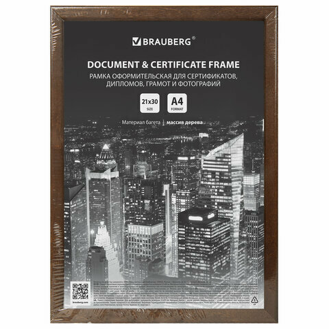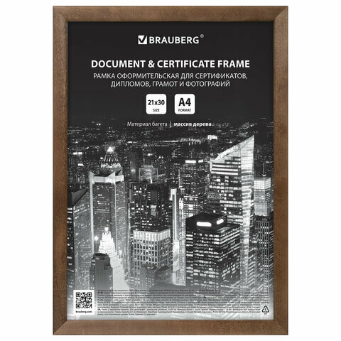Рамка (фоторамка) для фотографий / картин / сертификата / диплома / грамот А4 21х30см, дерево, багет 14мм, акриловый экран, Brauberg Elegant, 391294