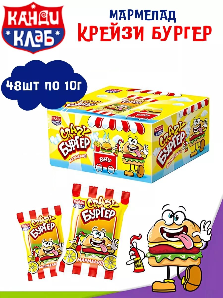 Мармелад Крейзи Бургер 48 шт по 10 гр интересное:
