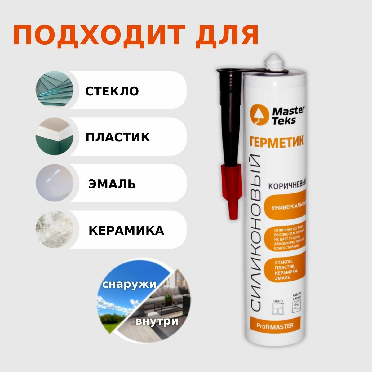 Купить Герметик силиконовый коричневый MasterTeks PM, 260мл, универсальный
