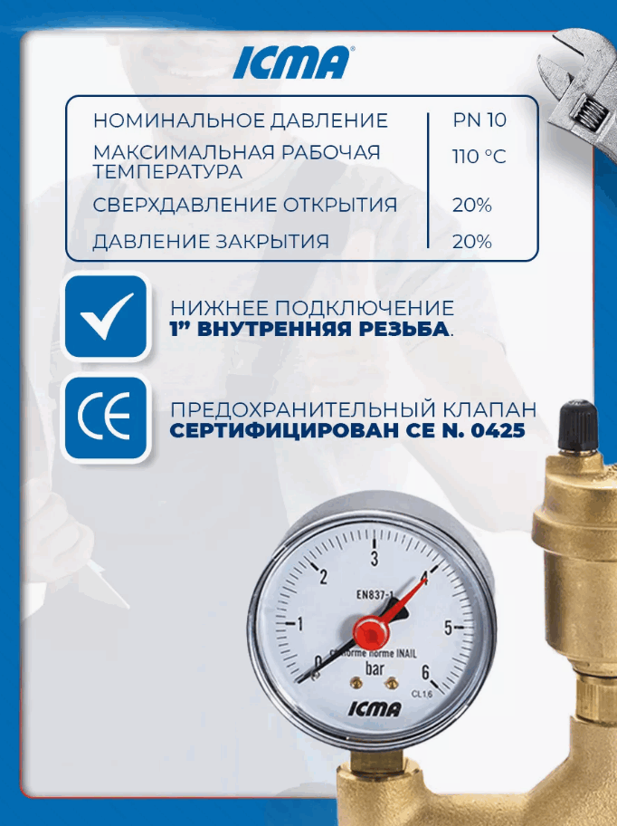 Группа безопасности котла (ICMA Италия) 1", латунь (автоматический воздухоотводчик, предохранительный клапан, манометр) интересное: