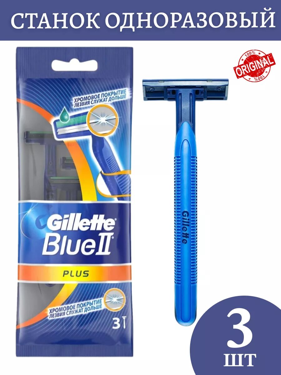 Одноразовые бритвенные станки Gillette Blue-2 Plus, 3 шт.