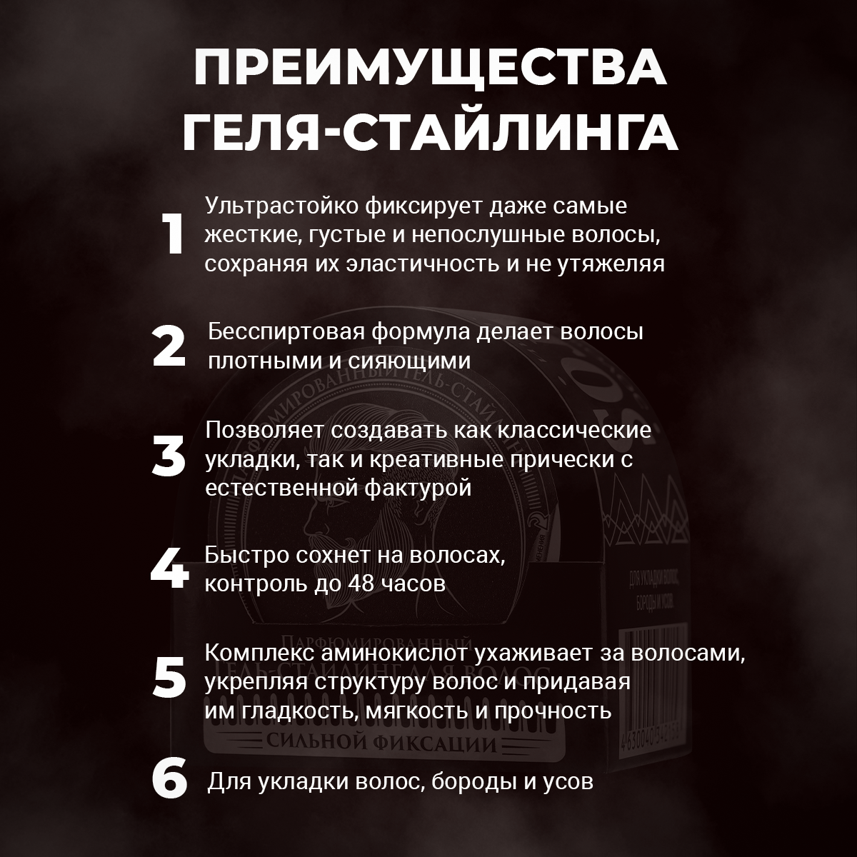 Гель стайлинг для волос, бороды, усов сильной фиксации парфюмированный, с аминокислотами, в банке, 75 мл интересное: