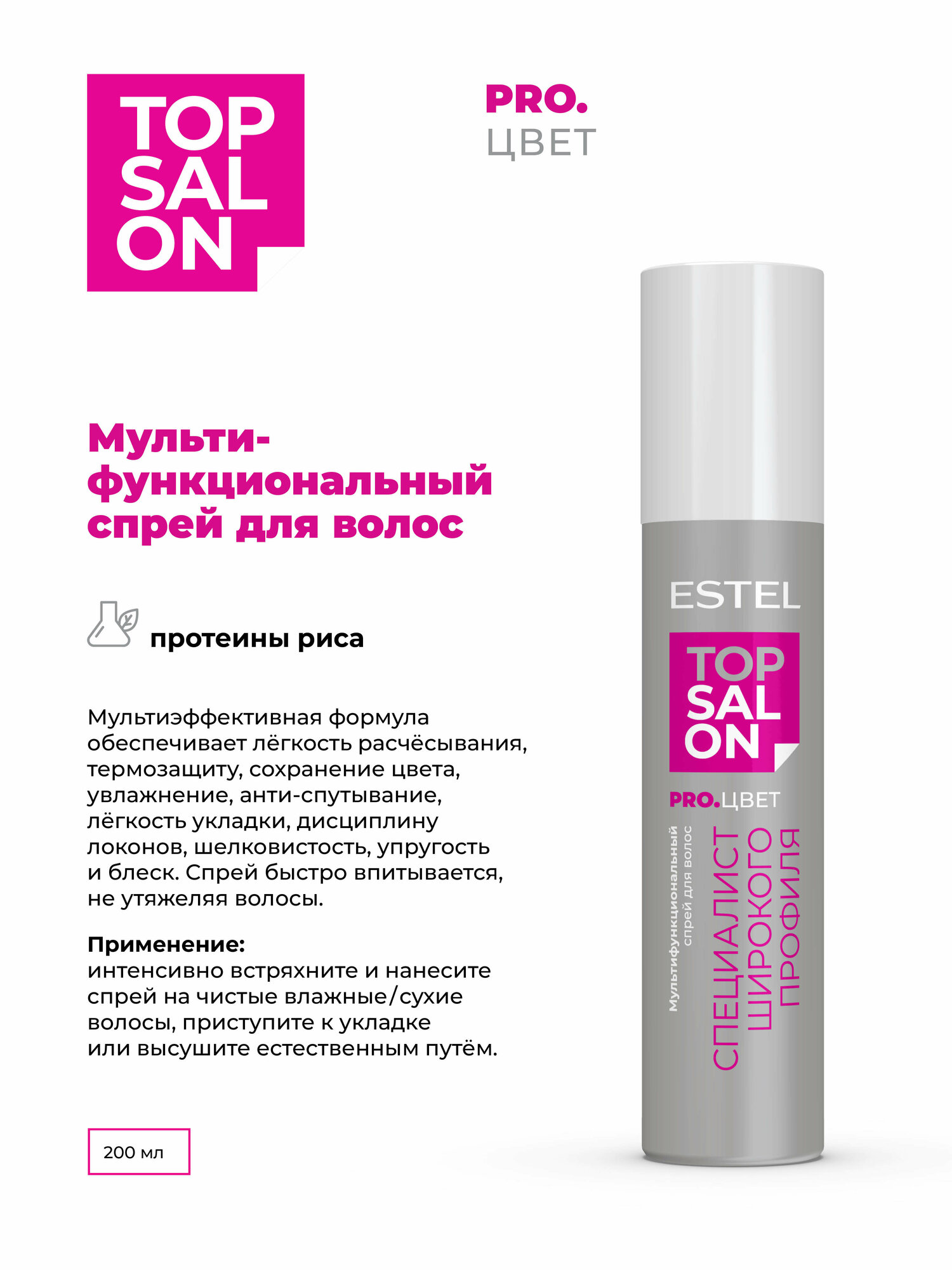 ESTEL / TOP SALON – Мультифункциональный спрей для волос PRO.цвет, 200мл (арт.: ETS/C/SP200) интересное: