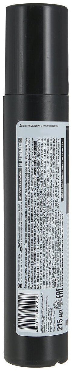 | Способ применения | 1.Для фиксации прически: распылять на сухие уложенные волосы с расстояния 30-35см. 2.Для создания дополнительного объема: опустите голову вниз и распыляйте лак на волосы снизу вверх. |