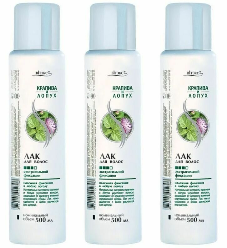 Витэкс Лак для волос Professional Hair Care, Крапива и лопух, экстрасильной фиксации, 500 мл, 3 шт.