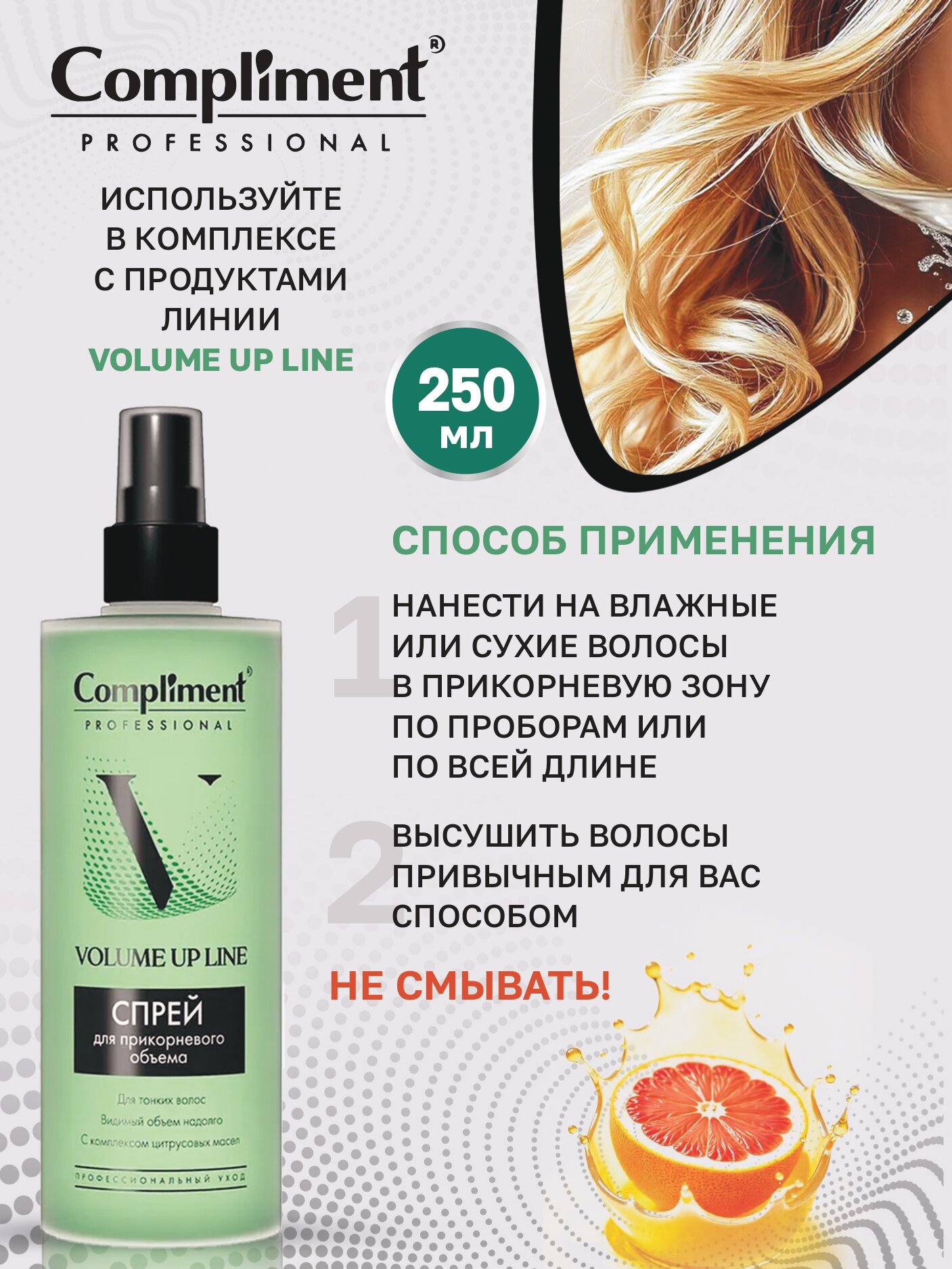 Compliment Professional Volume Up Line Спрей для прикорневого объёма 250 мл интересное: