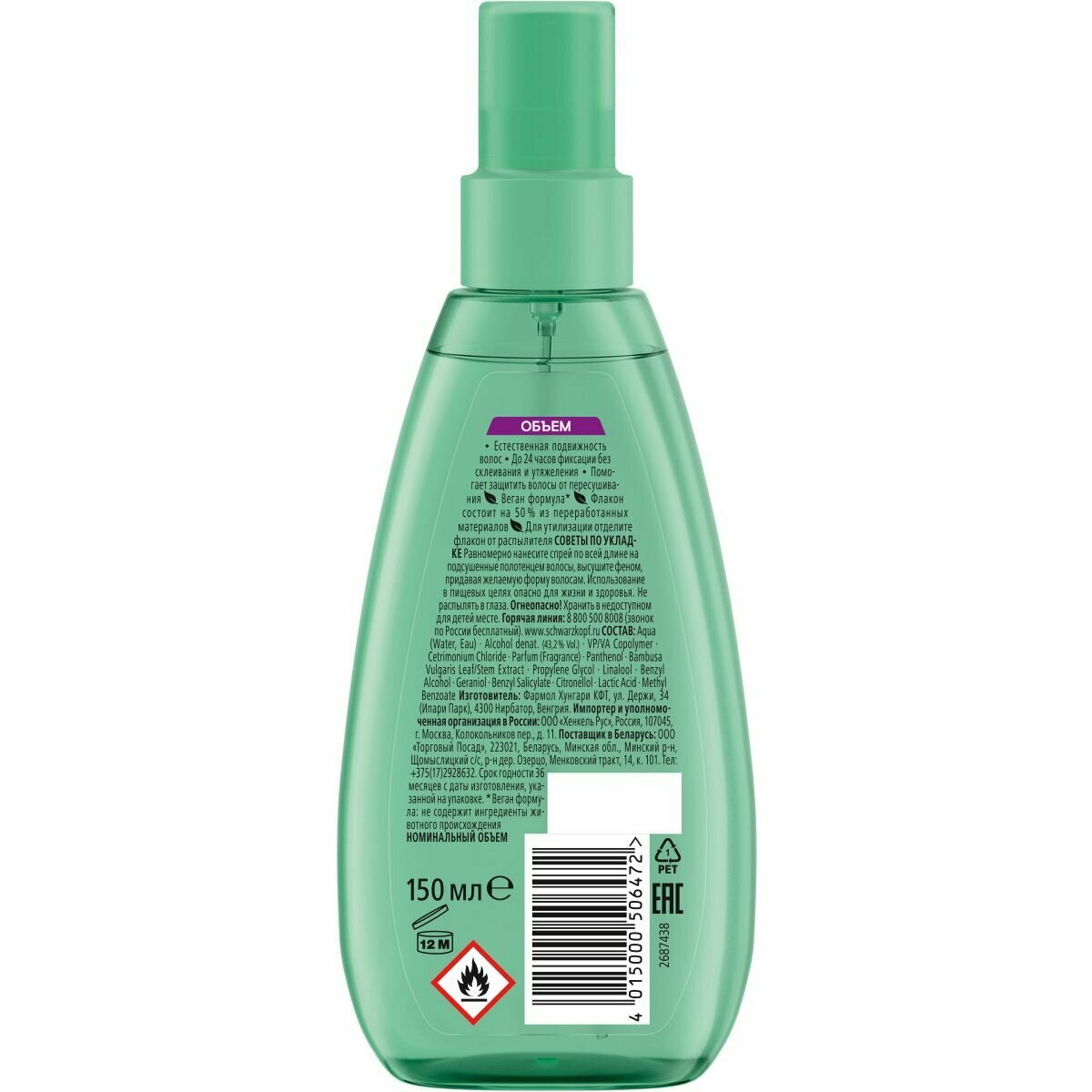 | Способ применения | Равномерно нанесите спрей по всей длине на подсушенные волосы, высушите феном, придавая желаемую форму волосам. |
