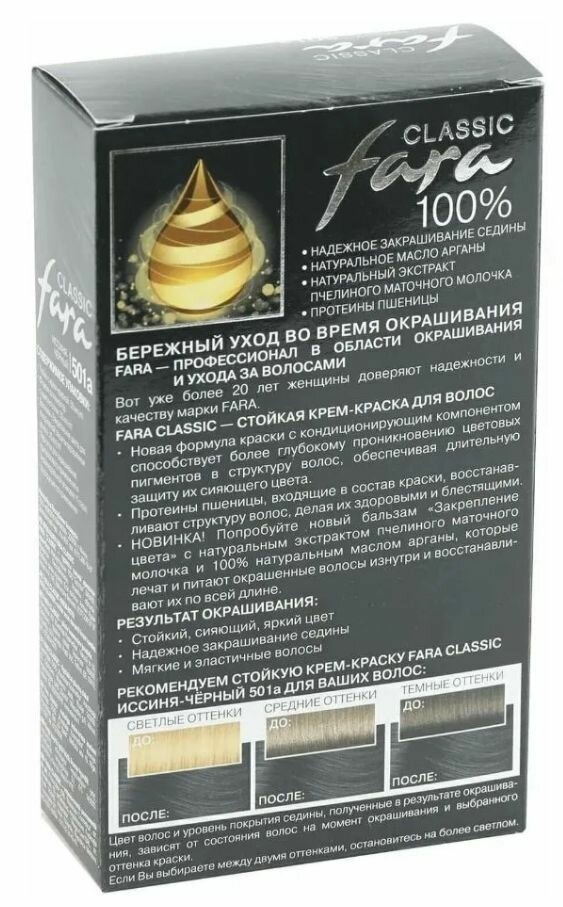 Fara Classic Стойкая крем-краска для волос, 501а, иссиня-черный, 115 мл
